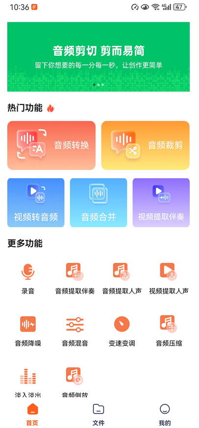 音频格式转换、音频裁剪、音频合并、音频混合、音频录制、视频提取音频、音频淡入淡出、手机录音等功能,为用户提供音频处理解决方案。