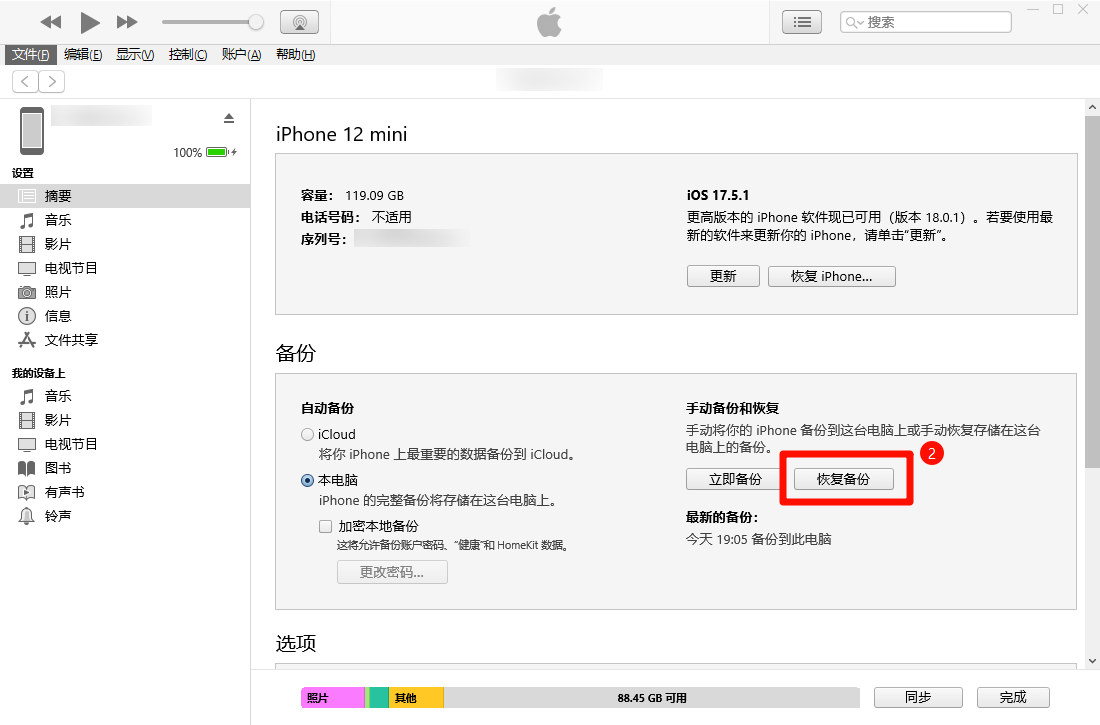 ★ 自动备份手机数据恢复方法四:通过iTunes恢复旧备份
