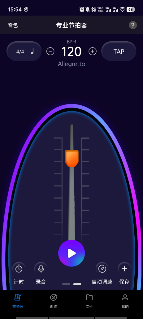 5.除此以外,节拍器Pro还包括音色、计时、录音、自动调速、保存节拍等功能。