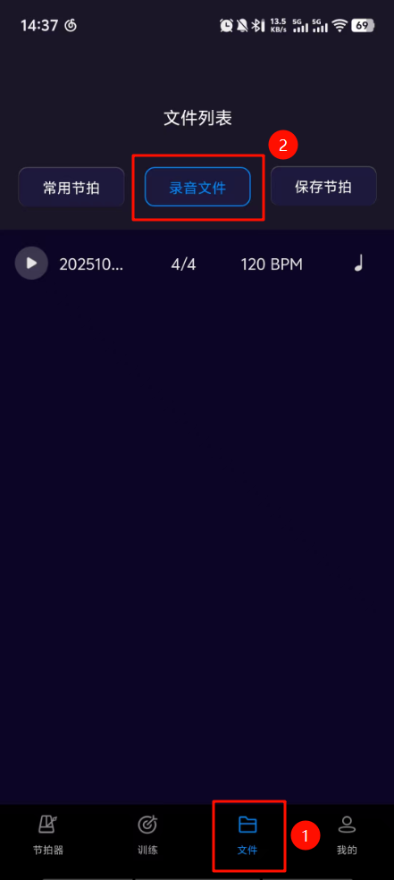 4.您可在底部“文件”页面中选择“录音文件”,查看刚刚保存的录音。