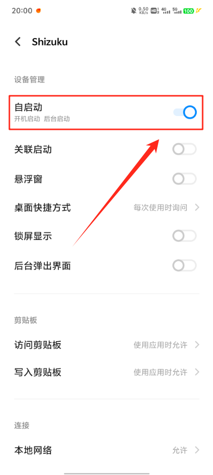 打开手机【设置】→【应用设置】→【权限管理】→找到Shizuku后允许其自启动