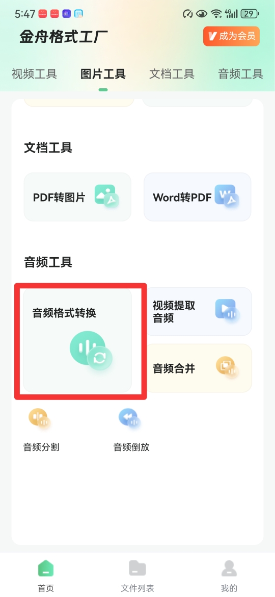 工具1:借助“金舟格式工厂app”转换音频格式