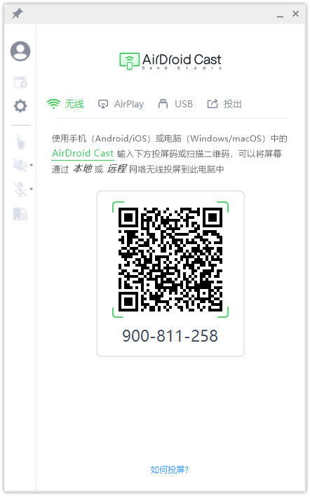 第二步、在电脑上打开软件,你会看到一组9位投屏码和一个二维码。在iPhone上打开App,输入这串投屏码,或者直接扫描电脑上的二维码。此时电脑会弹出请求,点击“允许”以接收iPhone的屏幕。
