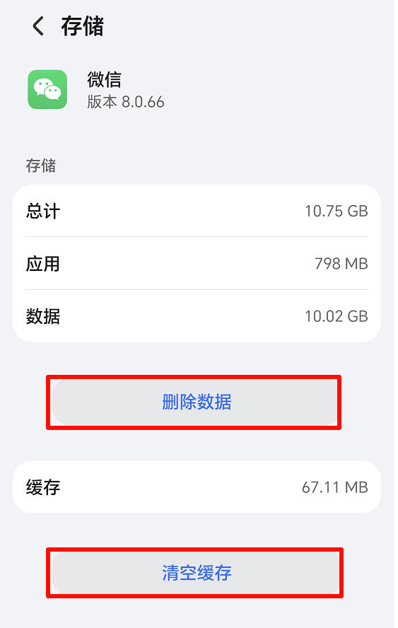 2. 点击“清除缓存”(不要点“清除数据”,会删除所有微信数据)