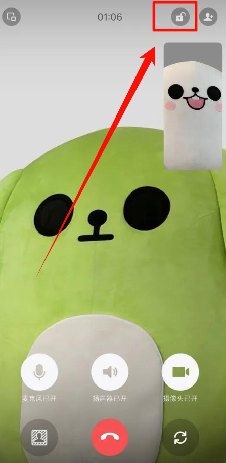 点击视频通话界面右上角锁形图标,可隐藏挂断、切换摄像头等按钮,避免手滑、误触导致通话中断。