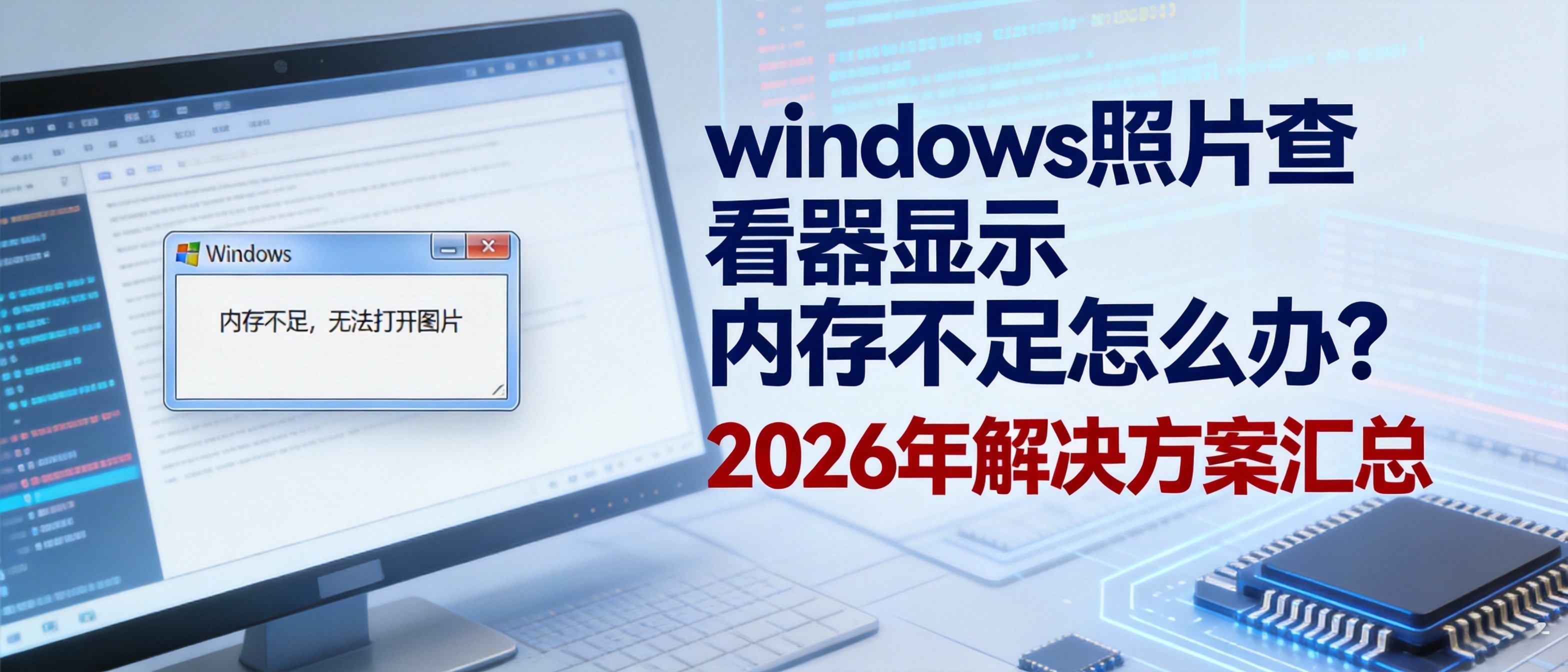 明明电脑物理内存充足,打开普通图片时却频繁弹出“Windows照片查看器无法显示此图片,因为计算机上的可用内存可能不足”的提示?其实这种报错并非单纯由硬件内存短缺导致,背后涉及32位应用限制、系统配置